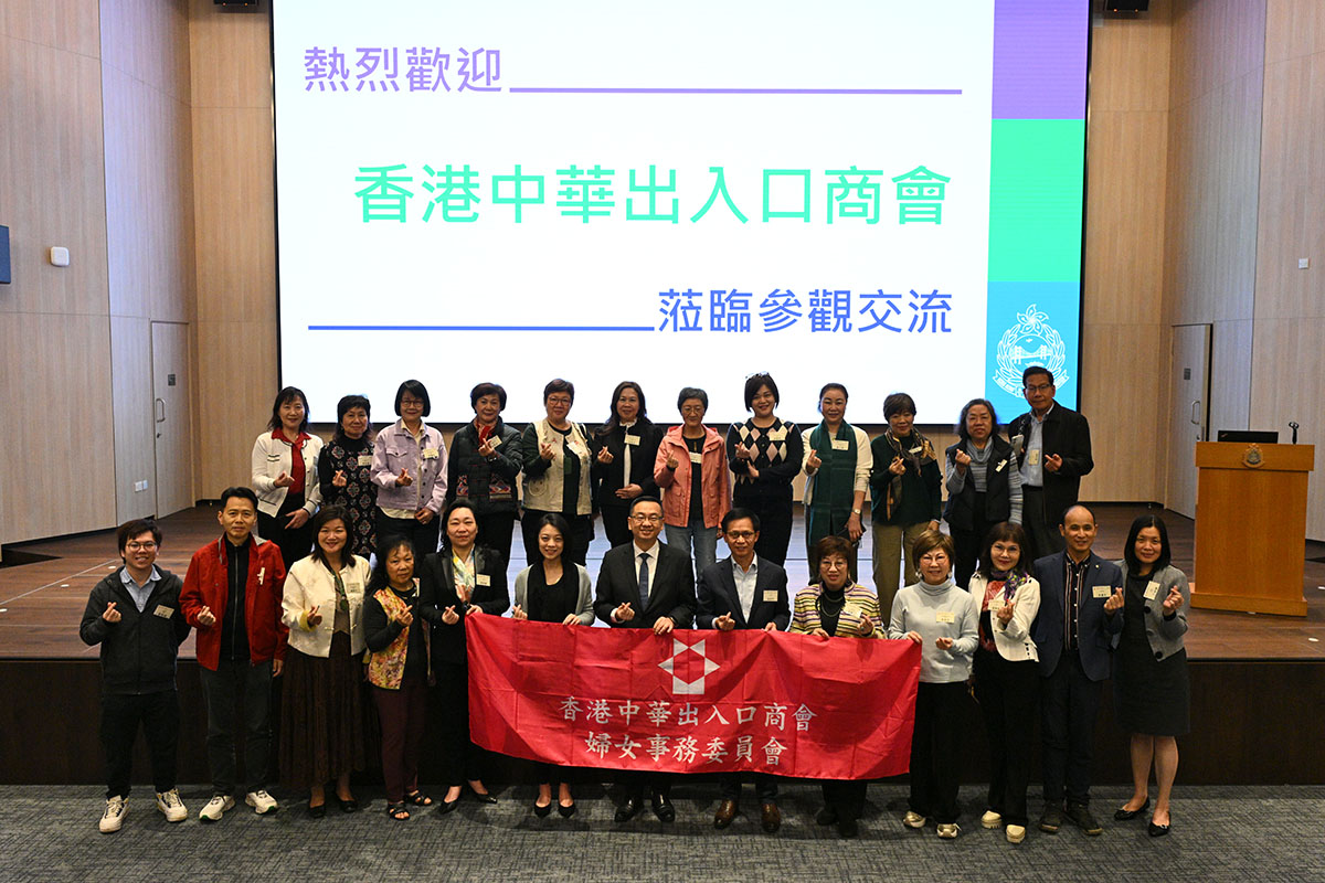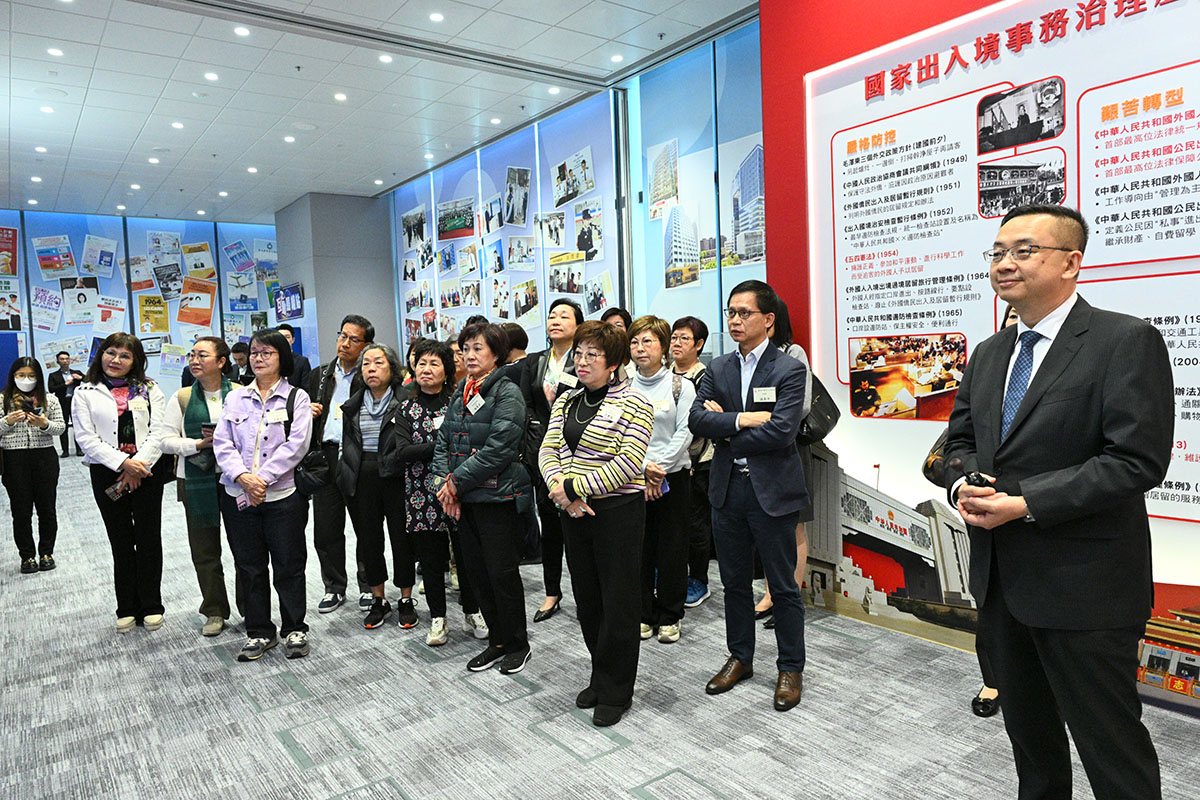 活動在中出秘書長帶領下,由商會婦女事務委員會發起,並組織其他委員會成員參加,共有21人成行。入境處同事首先在演講廳向大家介紹了入境處的主要工作,以及這座於2024年落成的新總部大樓。在八樓使命展示館,大家了解到入境處最初是從警務處分拆出來,發展到現時擁有8000人編制的紀律部隊,深深體會到入境處工作對維護香港繁榮安定和國家安全和利益是多麼的重要。
