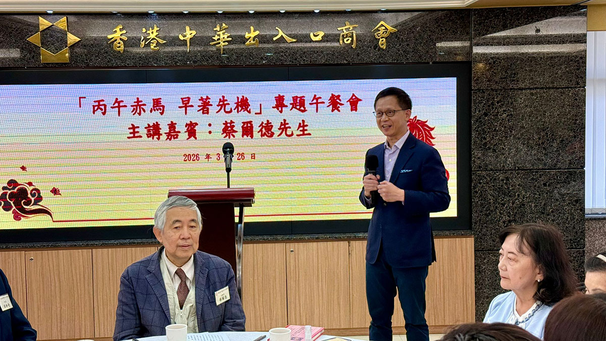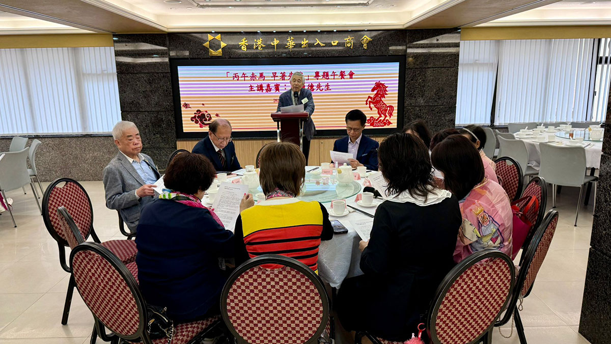 金馬迎春,馬到功成,商會推出應節的「丙午赤馬 早著先機」專題午餐會,為會員們提供掌握馬年運程先機的時機,是次活動邀請到本港風水世家傳人蔡爾德擔任主講嘉賓,指點迷津,剖析赤馬之年趨吉避凶之道。